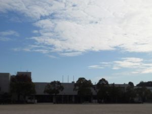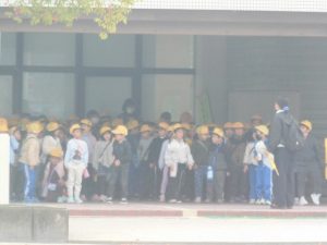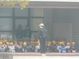 学年主任の先生の話を「よく聴いて」いました。(撮影は西門より・・・ズーム 優れものですね。)