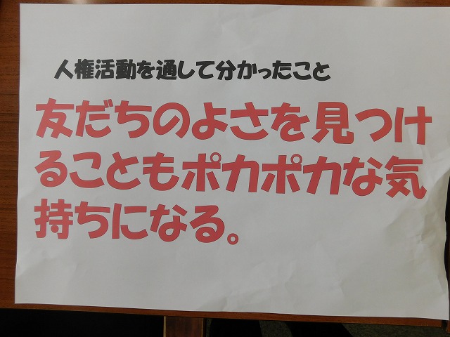 ボランティア委員がパワーポイント資料をつかって、「人権」についてわかりやすく説明しました。