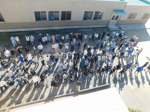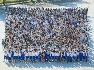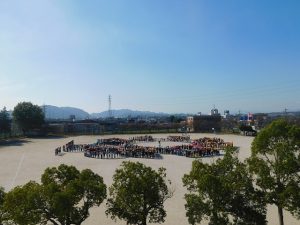 No dia 30 de outubro, solicitamos à empresa Himawari Aerial Photography para tirar uma foto aérea do nosso personagem e imagem da escola, “Kita SUN”.