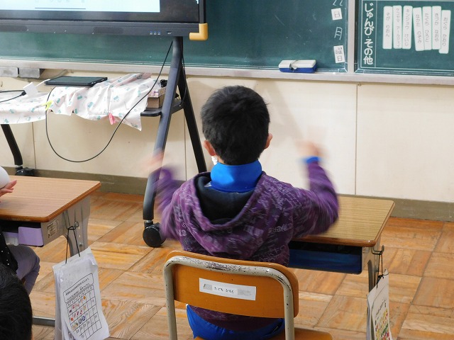 *運動委員会の皆さんがつくった動画が素晴らしいので、こんな風に、「やってみたい!」「どんな風にやるのかな?」そんな知的好奇心が姿に出てきたんだと思いました。
