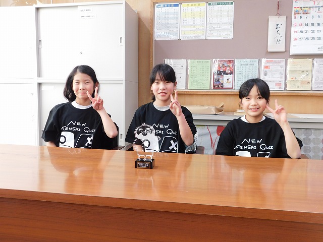 天才クイズに出場し、見事「天才賞」に輝いた3人が校長室にやってきました。