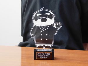 天才賞のトロフィーとTシャツを見せてもらいました。