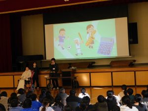 子どもたちは、微笑みながら真剣に話を聴いていました。
