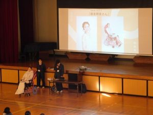 5年生が総合的な学習の時間に学んでいる「福祉」の学習で、講師を招いて授業を行いました。