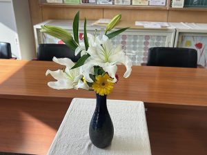 校務員さんが、今週も新しい花を飾ってくださっていました。