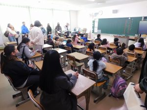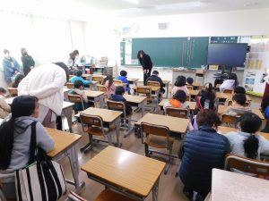 The incoming Grade 1 students who have foreign nationality joined, together with their parents, the “class observation,” “lunch preparation observation,” “school lunch experience,” and an actual “classroom experience.”