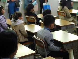 As crianças estrangeiras que entrarão no 1º ano participaram, junto com seus responsáveis, de “observação de aula”, “observação da preparação do almoço”, “experiência do almoço escolar” e também de uma “aula prática”. (Depois disso, elas participarão da venda de materiais escolares.)