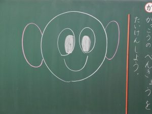 背筋を伸ばし、手は膝の上に置き・・・という文化は、日本独特のものなのでしょうか?挨拶のあとには「礼」をします。みんな先生の話をよく聞いていたことが、動きがそろうところからわかりました。