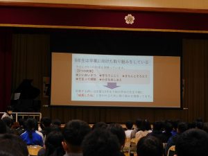 さあ、第2部。市長さんのお話です。冒頭に、発表への称賛の言葉と、「サヨリめし、給食で取り上げられないかな、と思いました。」という発言が!!みんなの提案をしっかり聴き取ってくださっていることに感激!!