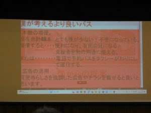 スライドショーでの発表が多い中、動画での発表もありました。内容は路線バス。製作時間は、なんと100時間!!