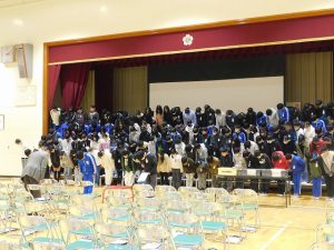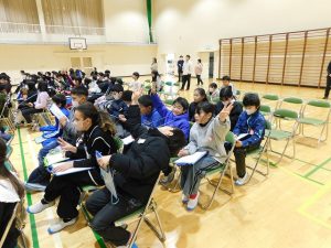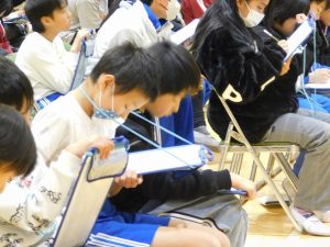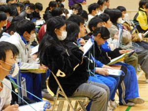 すべての発表が終わりました。5年生が教室に戻る間、トイレ休憩。