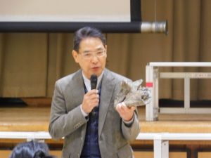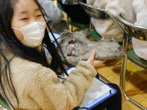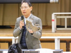 市長さんは、可児市の魅力について、化石のレプリカ(とても高価)を見せて、触らせてくださいました。