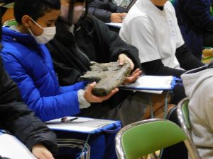 He also showed a (very expensive) fossil replica to explain the魅力 of Kani City, and even let the students touch it.