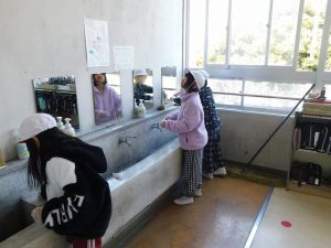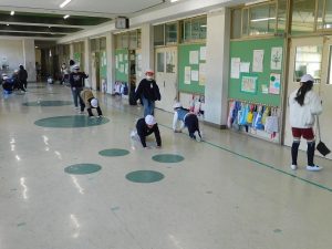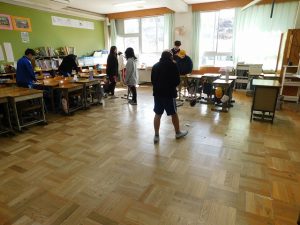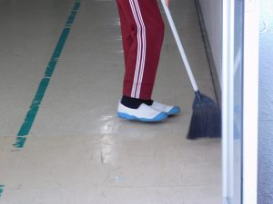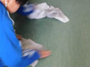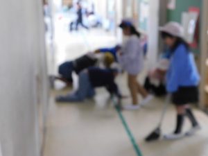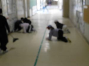 朝一番には職員がモップをかけています。掃除時間は子どもたちが掃除しています。何かよい対策を考えていきます。