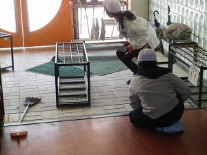 Here are the 6th graders. No talking — everyone was doing their assigned cleaning quietly and seriously.