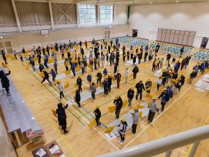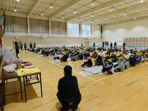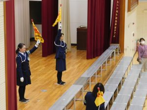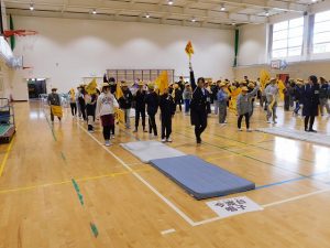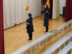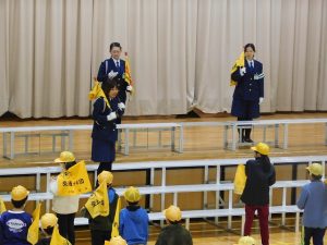 Today, during the long lunch break, we held the “Baton Touch Leader Meeting,” where we learned how to use the flag and the whistle during group commuting to school, with the Traffic Safety Instructor as our speaker.