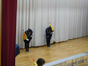 代表児童のお礼の言葉。「班長、副班長の仕事を頑張ります!」