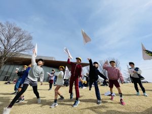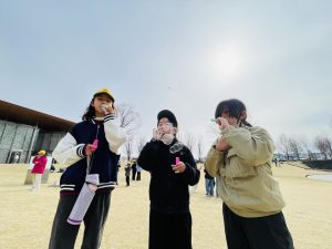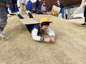 シャボン玉、フラフープ、紙飛行機、紙風船、芝すべりを各ブースで楽しみました♪