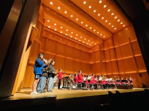 指揮者体験や、ステージに上がって間近で楽器の音色にふれました。