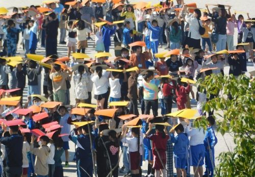 Ontem, os alunos da turma Kagayaki 8 trouxeram até a sala do diretor os materiais escolares que haviam encomendado. “Muito obrigado.”