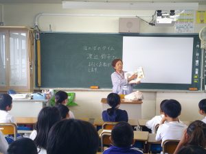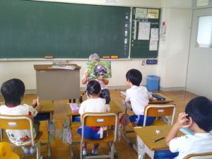 読書タイムの時間、月1回にあおむしの会のみなさんの読み聞かせです。毎回どんな本を読んでいただけるのか楽しみです。