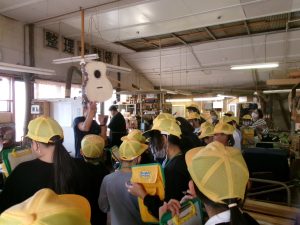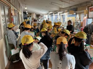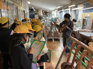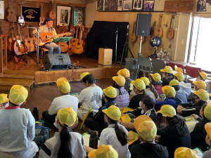 今日は、校区にあるヤイリギターの工場見学に行ってきました。一つ一つ手作業でギターを作る様子、ギターに塗装をしている様子、ギターの音質を良くするためにギターを寝かせている部屋など、普段見ることができない工程を見させていただきました。最後には、ヤイリギターを使った演奏を聴かせていただき、素敵なギターの音色に触れることができました。「ギターを作る工程を見られて、うれしかった」「職人さんの思いを知ることができた」「地元にこんな素敵なギター工場があることを知った」など、多くの感想が子どもたちから聞こえてきました。中小工場の学習、見学をした後に、大工場の学習、見学をし、その違いについてまとめていく予定です。