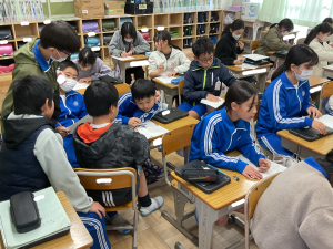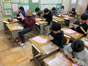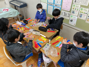 5年生では現在「6年生を送る会」の係会が始まっています。当日の司会・進行をする係、5年生としての出し物を考える係、体育館の飾り付けをつくる係に分かれ、着々と準備が進んでいます。