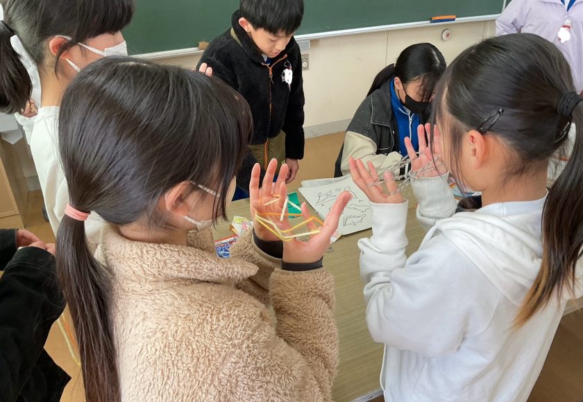 今回は5年生の児童が参加し、地域の皆さまに教えていただきながら、あやとりやこま回しなどの遊びを楽しみました。