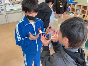 子どもたちは、優しく教えていただきながら夢中になって取り組み、笑顔あふれる温かい時間となりました。地域の皆さまとの触れ合いを通して、伝統的な遊びの楽しさや交流の大切さを感じることができました。