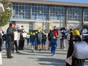 3月24日は、6年生が分団登校する最後の日でした。