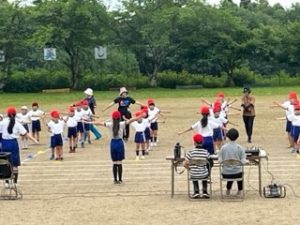 でも、子どもたちは、元気に過ごしています。体育館では、1・2・3年生が団体演技の練習をしていました。