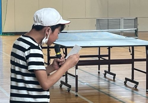 朝は、体育館で応援練習をしました。