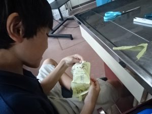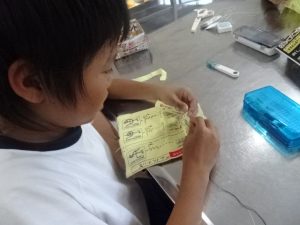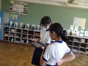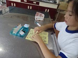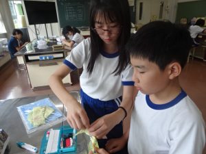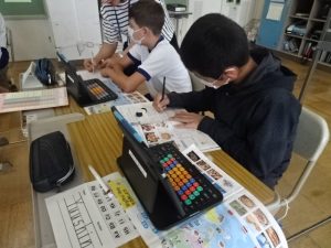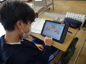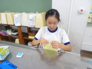 もう一つ5年生の学習風景、家庭科で手縫いの学習です。今日は、かがり縫いの練習、目印に慎重に針を刺しながら慎重に進めます。これは、理解と経験が必要です。Let’s study!あきらめないで学び続けましょう!