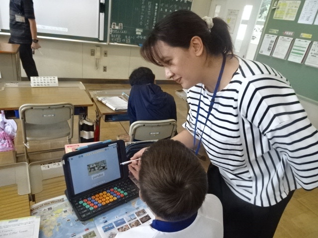 今日は、ALTの先生の来校日。5年生と6年生の英語学習の様子です。5年生は人物、6年生は国の紹介をします。タブレットを使って「調べる・書く・発音する」活動を通して英語を学んでいきます。こうして卒業までに700近くの英単語に学習するとともに、英語学習の楽しさの実感が中学校につながっていきます。兼山小の5.6年は英語専門の担当+ALTのネイティブな発音+少人数で、ぐっと学びが深まっています。