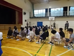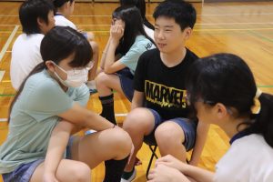 学校は、あと10日で前期ゴールを迎えます。朝活動で、前期まとめの会として、まず3人の委員長が前期の学校生活を振り返りました。
