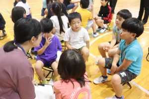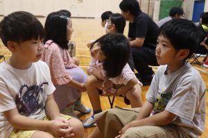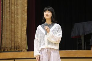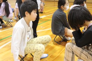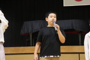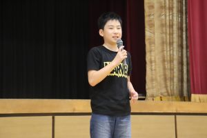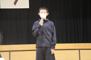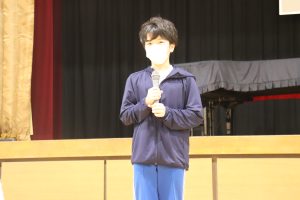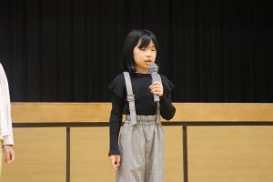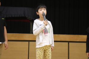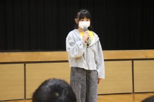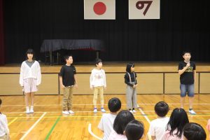 交流した後、5人の兼山っ子が進んで全校の仲間に発表しました。