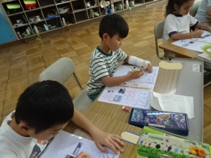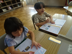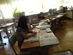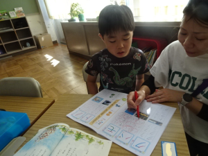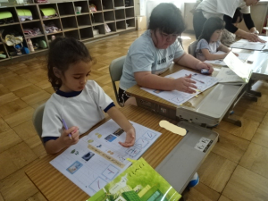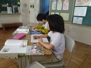 今日は、午後から就学時健診を行うので、全校が4時間授業です。その授業の様子です。1年生、カタカナをどんどん覚えています。花まるをたくさんもらって、やる気いっぱいです。