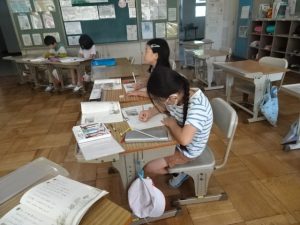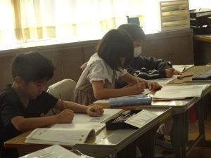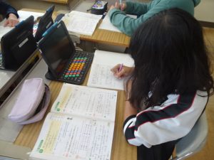 6年生は算数の学習、今日の新たな学びを確認しながら、問題に取り組んでいました。