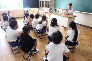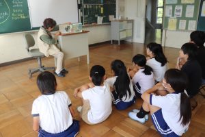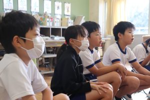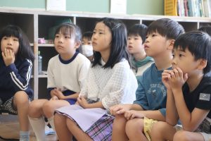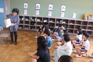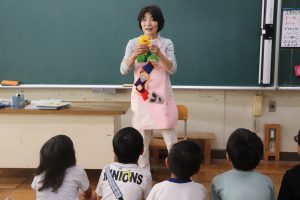 朝活動は、地域の読み聞かせサークルの皆さんからの読み聞かせでした。今朝も、すぅっと引き込まれる語り口調で一気にお話の世界へ・・・・。国語で学習したお話のエプロンシアター・紙芝居など、毎回魅力がたくさんです。