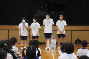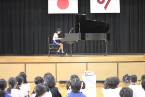 そして、見事、先月「第49回全日本ジュニアクラシック音楽コンクール」ピアノ部門小学5年生の部にて第5位に入賞した楽曲を全校に披露してくれました。最後に「聴いている人が笑顔になるような演奏をしたい」と夢を語ってくれました。素敵な演奏をありがとう!