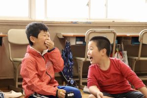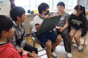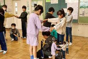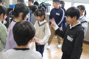 5日に行った久田見小学校との交流会、音楽交流会の後の活動の様子を紹介します。体育館を後にして、それぞれの教室で学年ごとに交流しました。自己紹介をしあった後は、ゲームを楽しみました。活動を通して、どんどん距離が縮まります。すてきな友達度アップ!