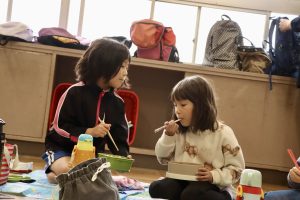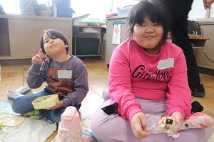 そして、お待ちかねのお弁当タイム。それぞれの教室でお話をしながらいただきました。お弁当は最高の笑顔が生まれます!すてきな友達と一緒だから笑顔倍増!