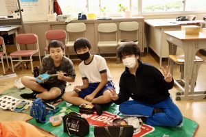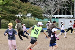 お昼休みは全校遊びのケイドロ。両校の6年生と全員の先生がオニでスタート!「運動場が広すぎるー!」と久田見の子、いつもと違う運動場で楽しんでくれました。途中、オニで集まり全員捕まえることを宣言しましたが、なかなか手ごわく「降参」で終了。結構長い時間駆け回りました。楽しかったー!