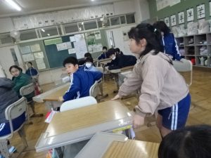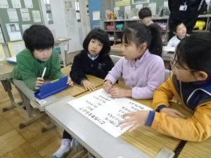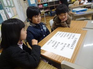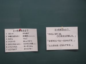 今日の朝活動は、スマイルタイム。「笑顔の”もと”プログラム」の一つで、きょうは「どっちをえらぶ」ゲームで、仲間との関わりを楽しみました。6年生、4年生、2,3年生の様子です。コロッケとからあげのどっちを選ぶ?なぜ?・・・改めて聞かれると・・・、ゲームを通して自分理解、仲間理解につながります。