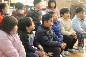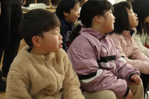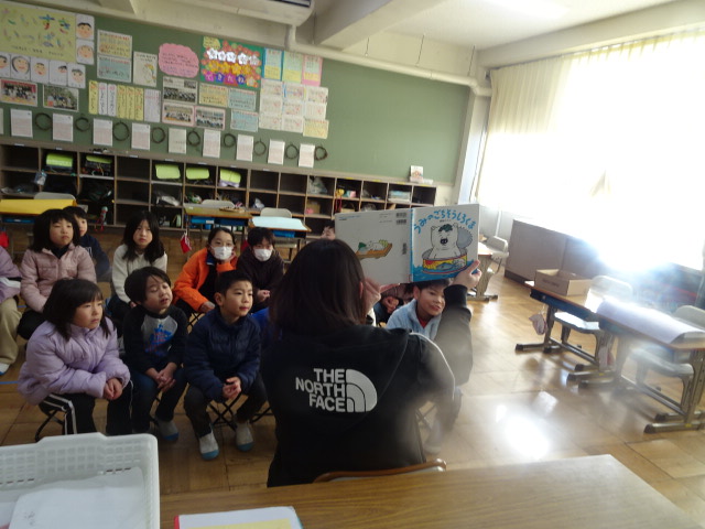 今週の読み聞かせは、兼山っ子の保護者の皆さんでした。その様子です。さすが、お父さんお母さん、子どもたちのことをよくわかっていらっしゃいます。見てください!子どもたちの表情!どの子も、物語の世界に引き込まれています。