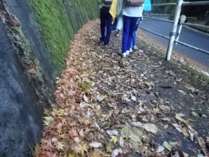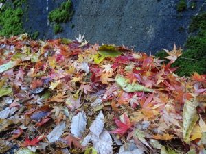 強い風のおかげで、たくさんの落ち葉に地面の紅葉ができていました。