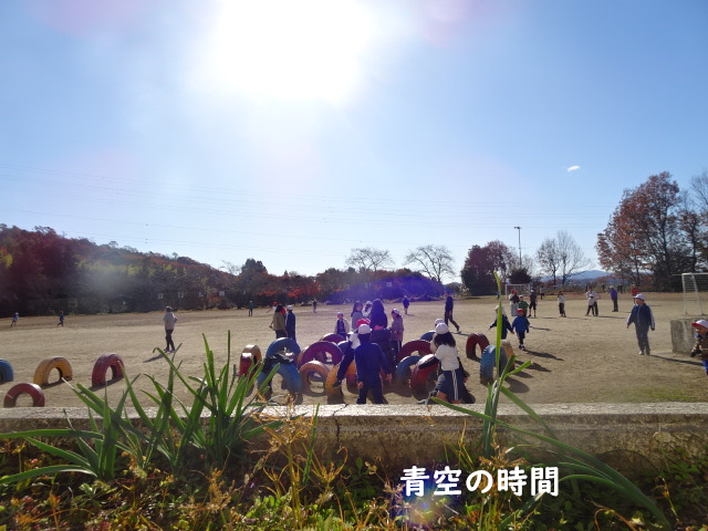 城戸坂を上る子どもたちが姿を現す頃、学校にも日の光が届きます。そして青空の時間は、たくさんの光をあびてみんなで遊びます。