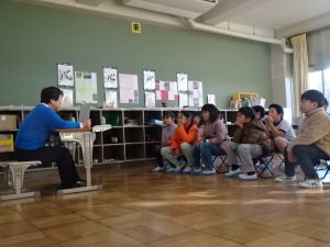 今日は、3年生の1時間目の読み聞かせサークル交流会に参加していただきました。始めにサークルの皆さんへインタビューの時間。「読む本は、どのように選んでいますか?」に、「季節を考えて」「学年に合う内容を」「選んだ本でみんなが楽しそうに聞いてくれることがとっても嬉しい」など兼山っ子たちへの愛を込めてこの活動をしてくださっている答えをたくさん聞きました。