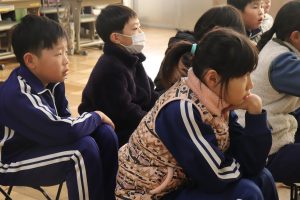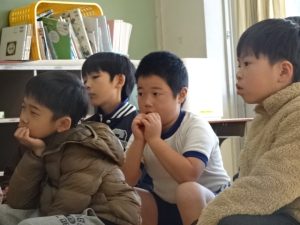 兼山小は、読み聞かせの朝活動が盛んです。中でも地域のサークルの方が、月に一度必ず読んでくださっています。そして、今朝もいつものように物語の世界へ・・・。
