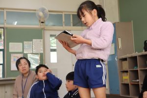 最後は、兼山っ子の読み聞かせを聴いていただきました。いつもと反対はドキドキでしたが、「うまく読めたね」と褒めていただきうれしくて、ほっとしました。「わたしが好き!」が増えましたね。